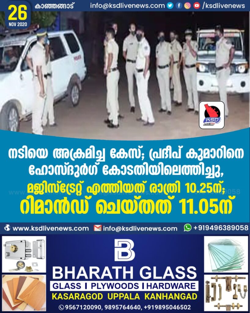 നടിയെ അക്രമിച്ച കേസ് ; പ്രദീപ് കുമാറിനെ ഹോസ്ദുർഗ് കോടതിയിലെത്തിച്ചു, മജിസ്‌ട്രേറ്റ് എത്തിയത് രാത്രി 10.25-ന്; റിമാൻഡ് ചെയ്തത് 11.05-ന്