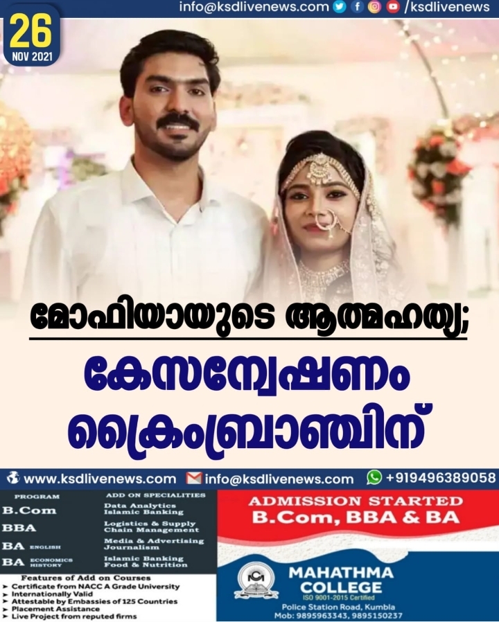 മോഫിയാ പര്വ്വീണിന്റെ ആത്മഹത്യ; കേസന്വേഷണം ക്രൈംബ്രാഞ്ചിന്