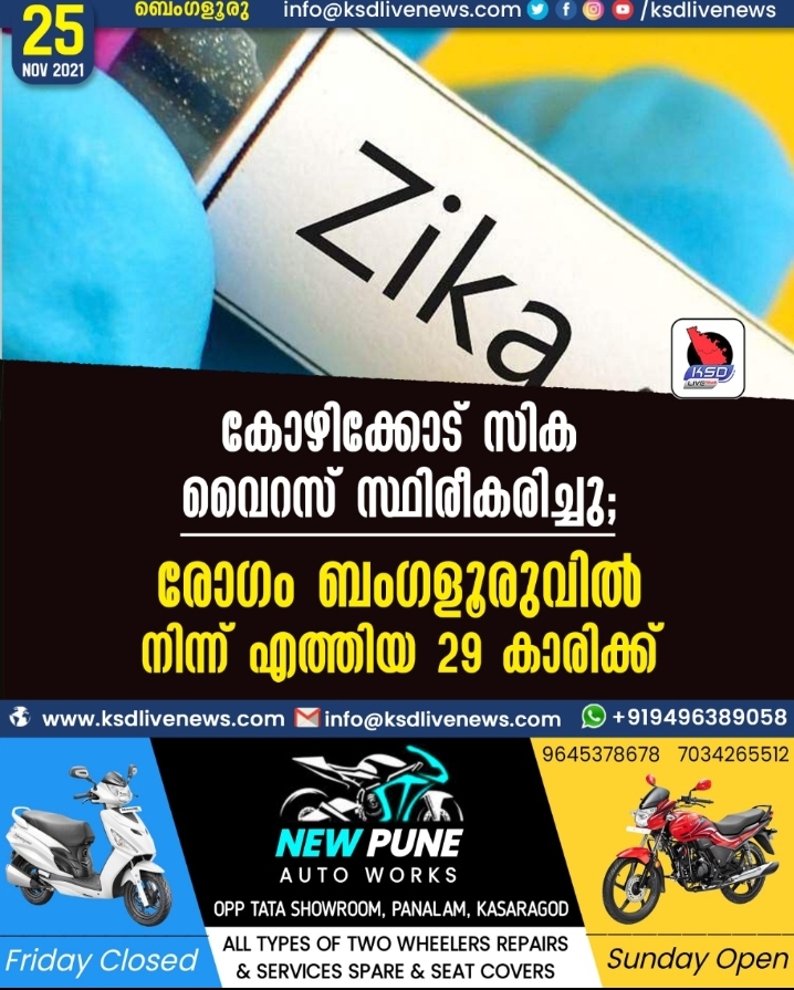 കോഴിക്കോട് സിക വൈറസ് സ്ഥിരീകരിച്ചു; രോഗം ബംഗളൂരുവില് നിന്ന് എത്തിയ 29 കാരിക്ക്