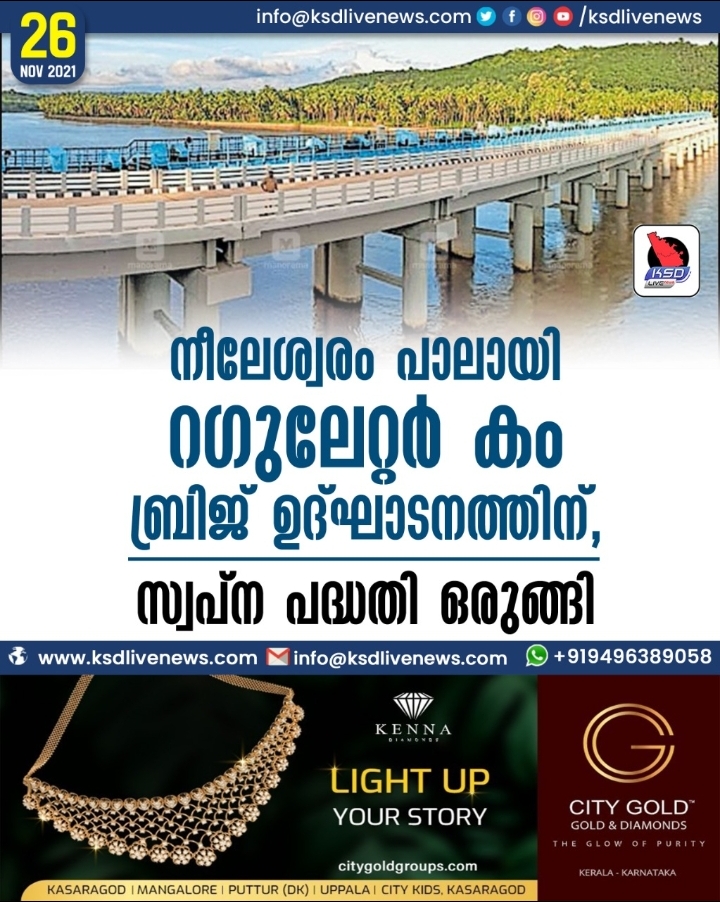നീലേശ്വരം പാലായി റഗുലേറ്റർ കം ബ്രിജ് ഉദ്ഘാടനത്തിന്, സ്വപ്ന പദ്ധതി ഒരുങ്ങി