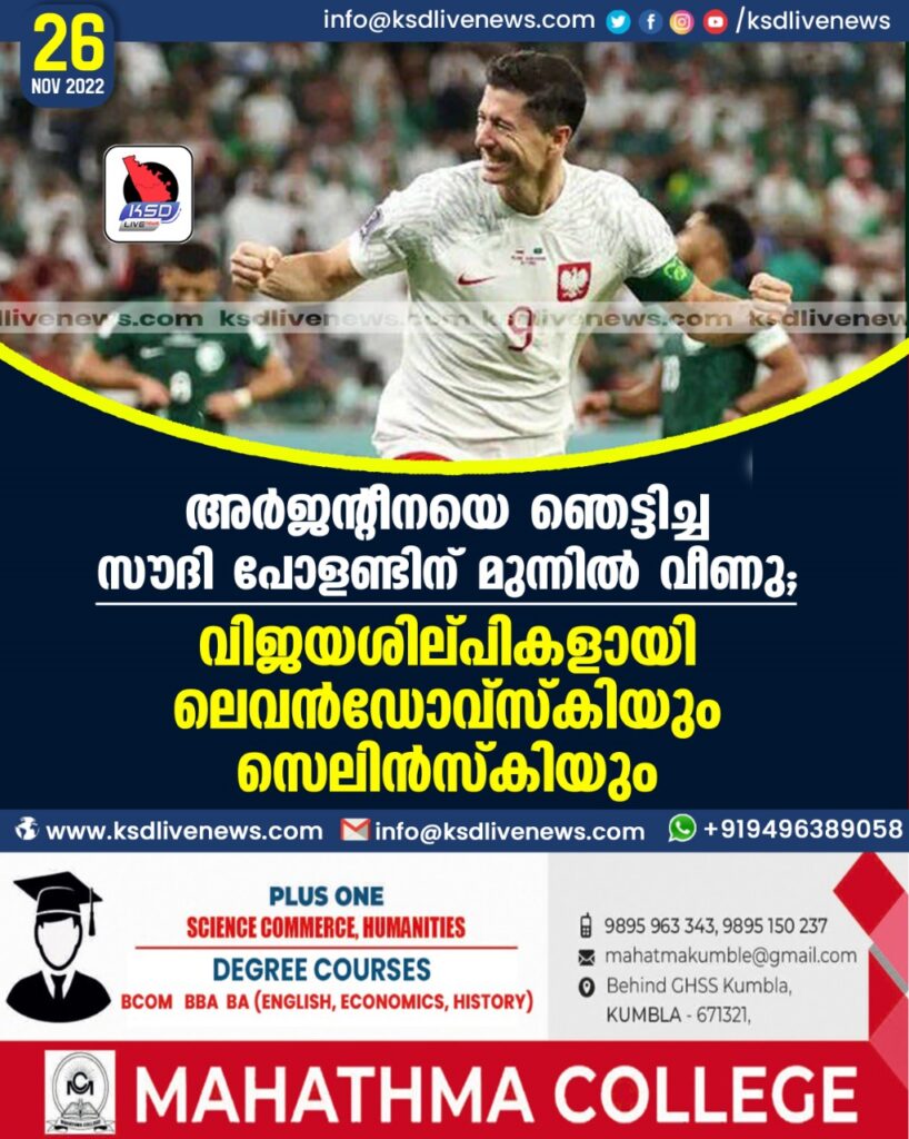 അര്‍ജന്റീനയെ ഞെട്ടിച്ച സൗദി പോളണ്ടിന് മുന്നില്‍ വീണു, വിജയശില്പികളായി ലെവന്‍ഡോവ്‌സ്കിയും സെലിന്‍സ്കിയും