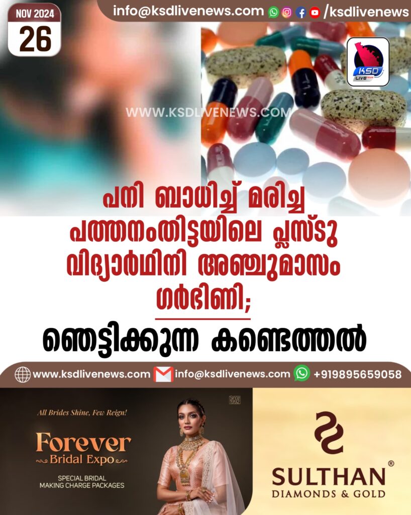 പനി ബാധിച്ച് മരിച്ച പത്തനംതിട്ടയിലെ പ്ലസ്ടു വിദ്യാര്‍ഥിനി അഞ്ചുമാസം ഗർഭിണി; ഞെട്ടിക്കുന്ന കണ്ടെത്തൽ