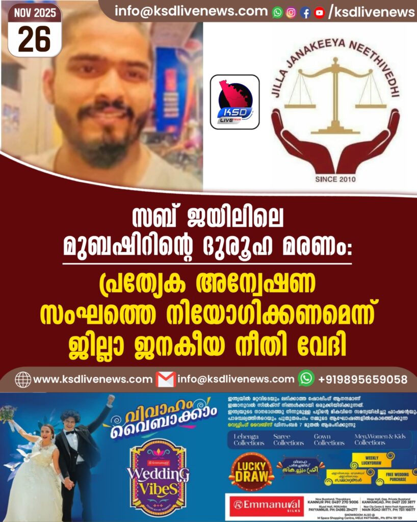 സബ് ജയിലിലെ മുബഷിറിന്റെ ദുരൂഹ മരണം: പ്രത്യേക അന്വേഷണ സംഘത്തെ നിയോഗിക്കണമെന്ന് ജില്ലാ ജനകീയ നീതി വേദി
