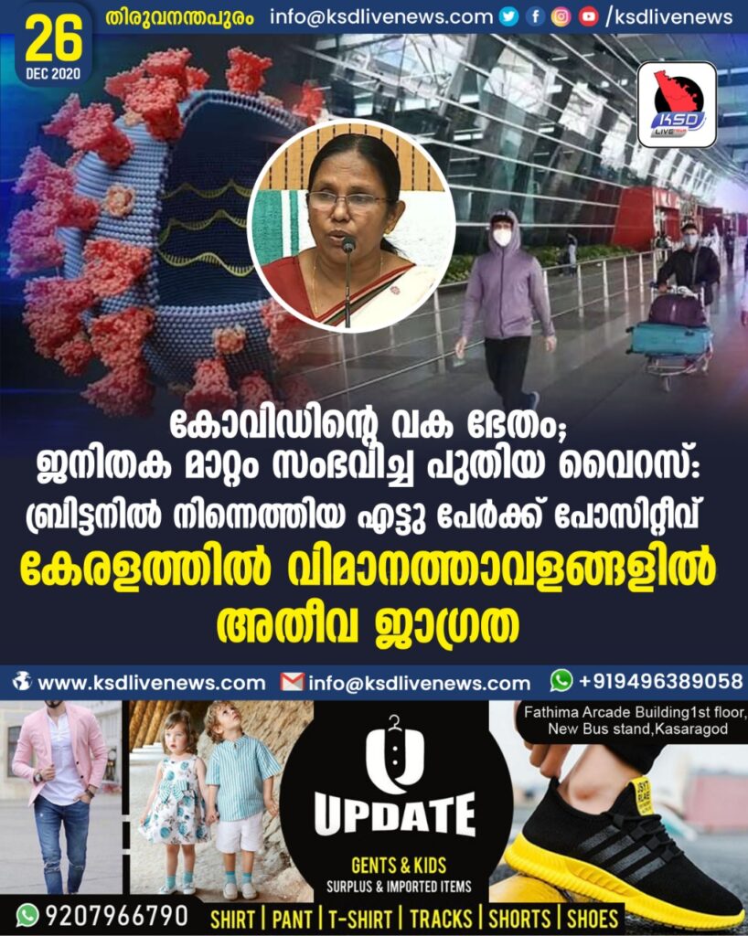കോവിഡിന്റെ വക ഭേതം ; ജനിതക മാറ്റം സംഭവിച്ച പുതിയ വൈറസ് : ബ്രിട്ടനിൽ നിന്നെത്തിയ എട്ടുപേർക്ക് പോസിറ്റീവ് ; കേരളത്തിൽ വിമാനത്താവളങ്ങളിൽ അതീവ ജാഗ്രത