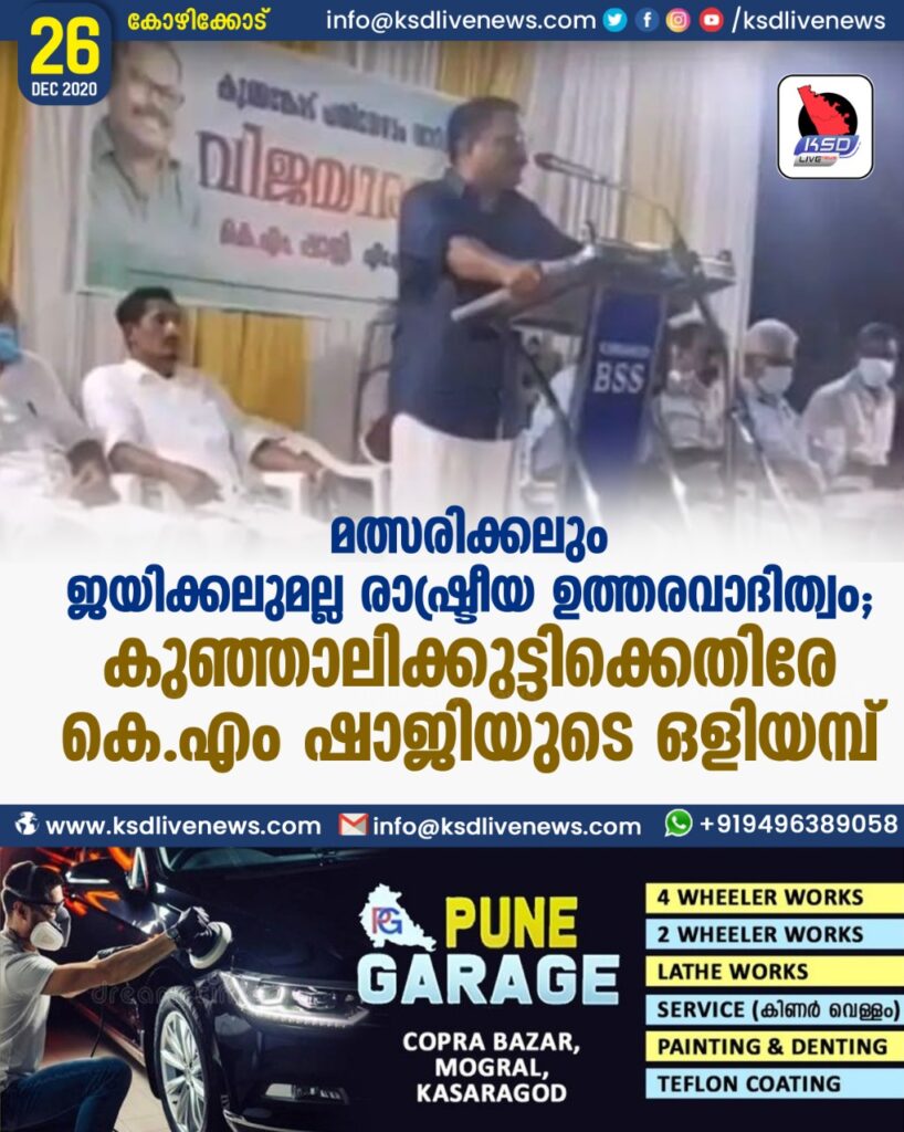 മത്സരിക്കലും ജയിക്കലുമല്ല രാഷ്ട്രീയ ഉത്തരവാദിത്വം; കുഞ്ഞാലിക്കുട്ടിക്കെതിരേ കെ. എം ഷാജിയുടെ ഒളിയമ്പ്
