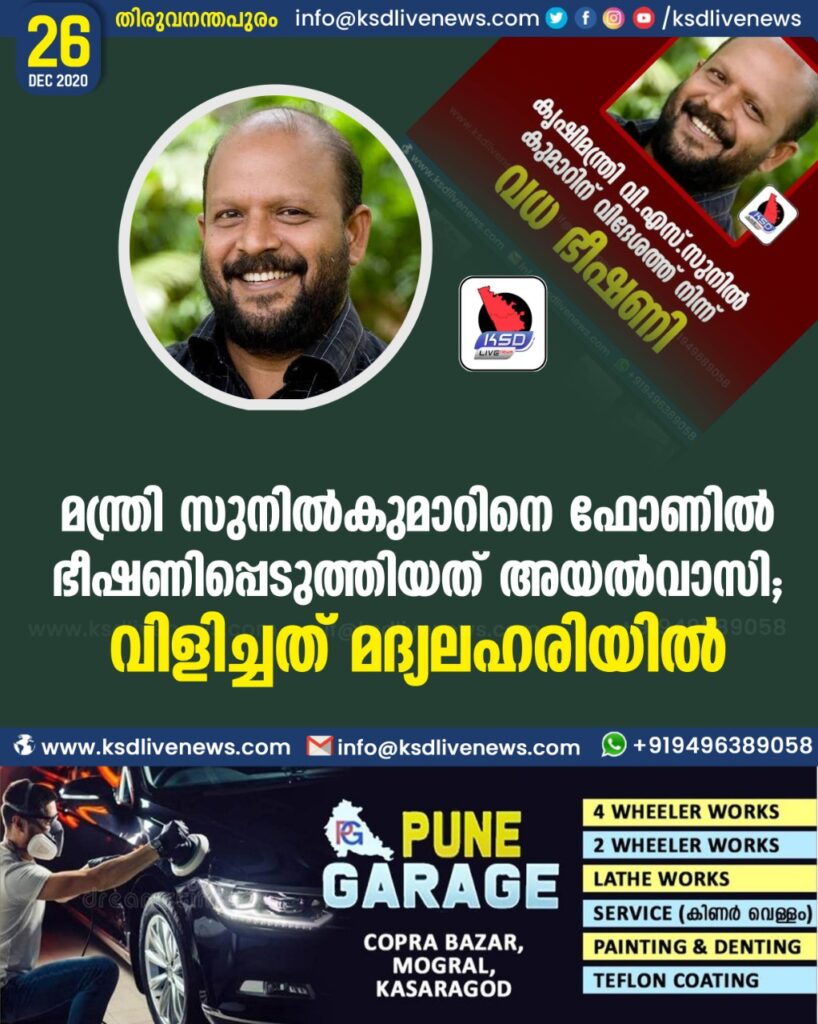 മന്ത്രി സുനിൽകുമാറിനെ ഫോണിൽ ഭീഷണിപ്പെടുത്തിയത് അയൽവാസി ; വിളിച്ചത് മദ്യലഹരിയിൽ