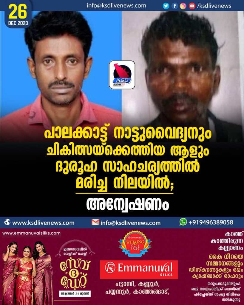 പാലക്കാട്ട് നാട്ടുവൈദ്യനും ചികിത്സയ്ക്കെത്തിയ ആളും ദുരൂഹസാഹചര്യത്തില് മരിച്ചനിലയില്; അന്വേഷണം