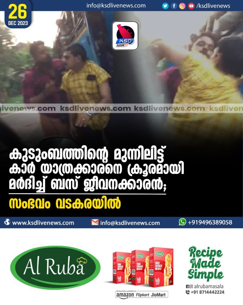 കുടുംബത്തിന്റെ മുന്നിലിട്ട് കാര്‍ യാത്രക്കാരനെ ക്രൂരമായി മര്‍ദിച്ച് ബസ് ജീവനക്കാരന്‍; സംഭവം വടകരയിൽ