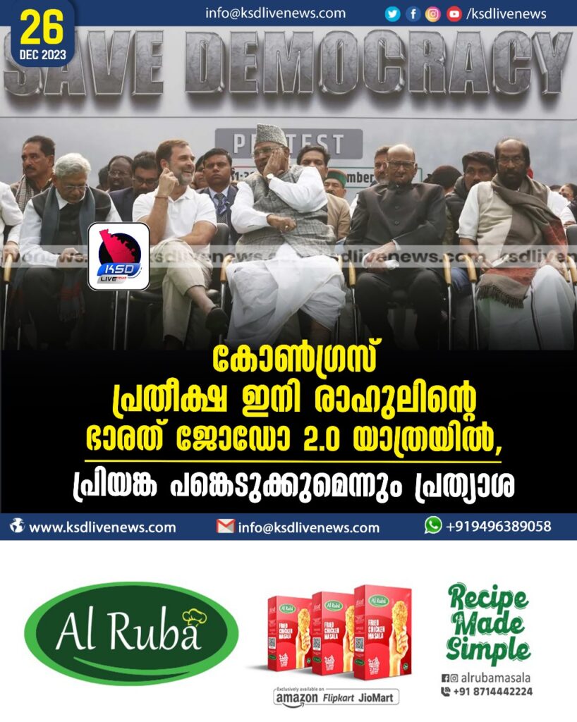 ഇപ്പോൾ, കോൺഗ്രസിലെ എല്ലാ പ്രതീക്ഷകളും രാഹുലിന്‍റെ ഭാരത് ജോഡോ യാത്ര 2.0 യിലാണെന്ന് തോന്നുന്നു, അതിൽ പ്രിയങ്കയും പങ്കെടുത്തേക്കാം.