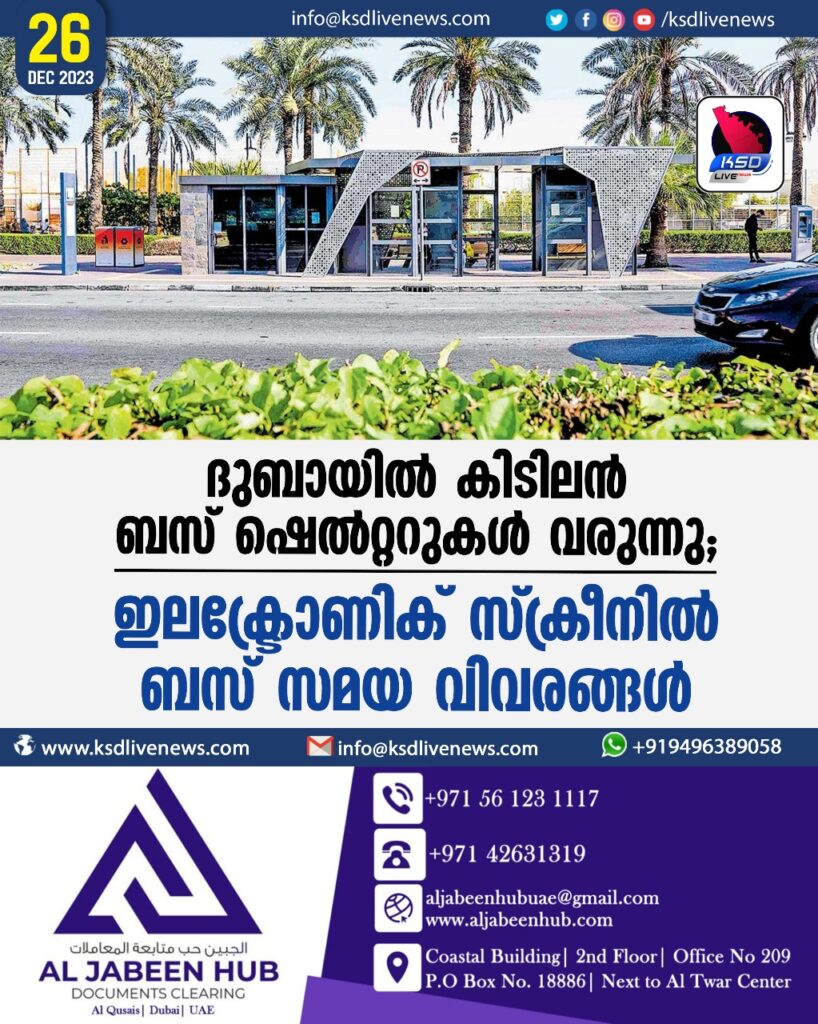 ദുബായിൽ കിടിലൻ ബസ് ഷെൽറ്ററുകൾ വരുന്നു; ഇലക്ട്രോണിക് സ്ക്രീനിൽ ബസ് സമയ വിവരങ്ങൾ