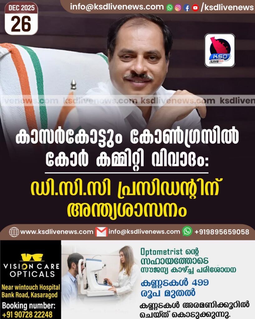 കാസർകോട്ടും കോൺഗ്രസിൽ കോർ കമ്മിറ്റി വിവാദം: ഡി.സി.സി പ്രസിഡൻറിന് അന്ത്യശാസനം