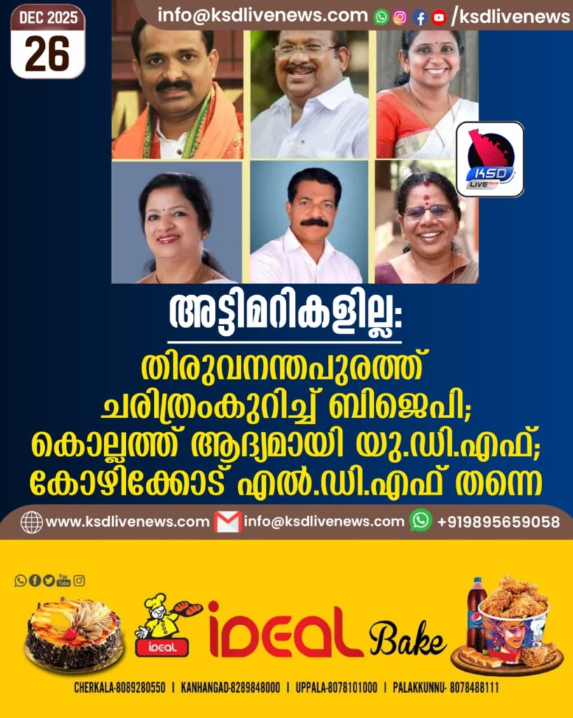 അട്ടിമറികളില്ല: തിരുവനന്തപുരത്ത് ചരിത്രംകുറിച്ച് ബിജെപി; കൊല്ലത്ത് ആദ്യമായി യു.ഡി.എഫ്; കോഴിക്കോട് എൽ.ഡി.എഫ് തന്നെ