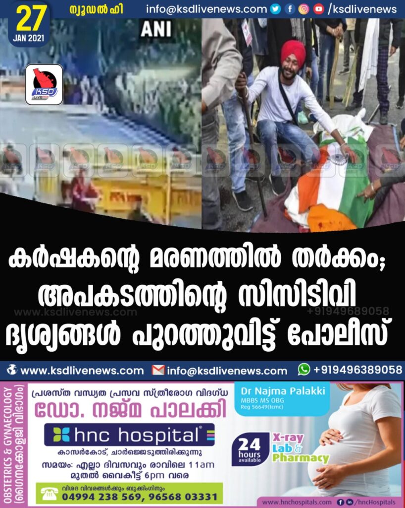 ന്യൂഡൽഹി: കർഷകരുടെ ട്രാക്ടർ റാലിക്കിടെ ഒരു കർഷകൻ മരിച്ച സംഭവത്തിൽ സിസിടിവി ദൃശ്യങ്ങൾ പുറത്തുവിട്ട് പോലീസ്. ഉത്തരാഖണ്ഡ് ബജ്പുർ സ്വദേശി നവ്ദീപ് സിങ്ങ്(26) ആണ് മരിച്ചത്. അടുത്തിടെയാണ് നവ്ദീപ് വിവാഹിതനായത്.