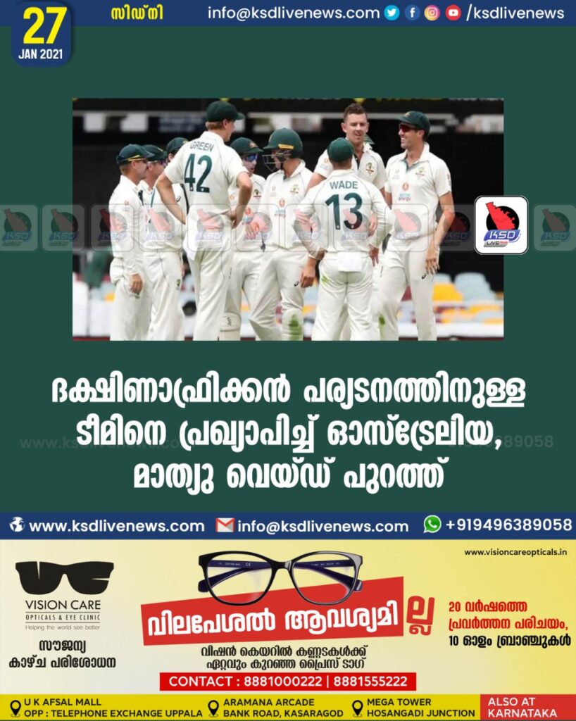 ദക്ഷിണാഫ്രിക്കൻ പര്യടനത്തിനുള്ള ടീമിനെ പ്രഖ്യാപിച്ച് ഓസ്ട്രേലിയ , മാത്യു വെയ്ഡ് പുറത്ത്