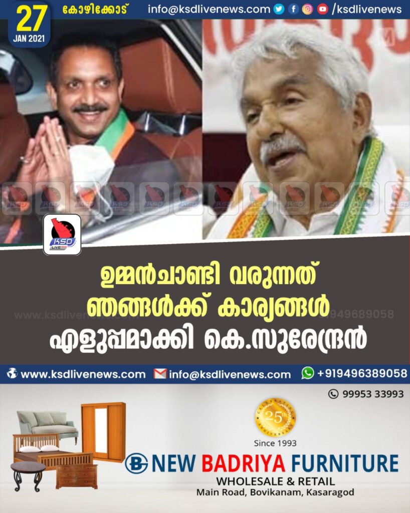 ഉമ്മന്‍ ചാണ്ടി വരുന്നത് ഞങ്ങള്‍ക്ക് കാര്യങ്ങള്‍ എളുപ്പമാക്കി -കെ.സുരേന്ദ്രന്‍