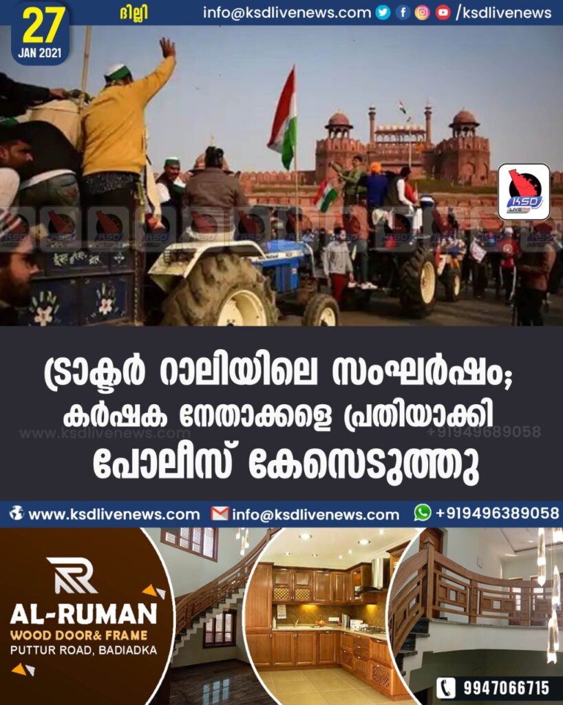 ട്രാക്ടർ റാലിയിലെ സംഘർഷം : കർഷക നേതാക്കളെ പ്രതിയാക്കി പൊലീസ് കേസെടുത്തു