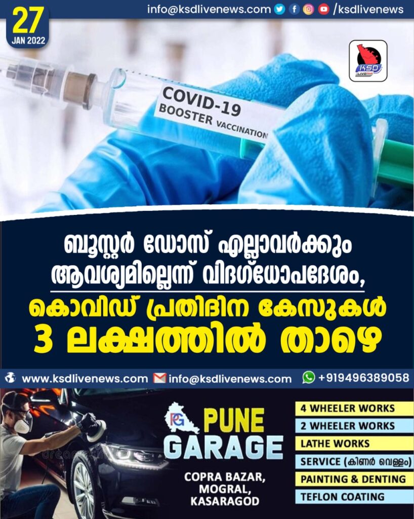 ബൂസ്റ്റർ ഡോസ് എല്ലാവർക്കും ആവശ്യമില്ലെന്ന് വിദഗ്ധോപദേശം, കൊവിഡ് പ്രതിദിന കേസുകൾ 3 ലക്ഷത്തിൽ താഴെ