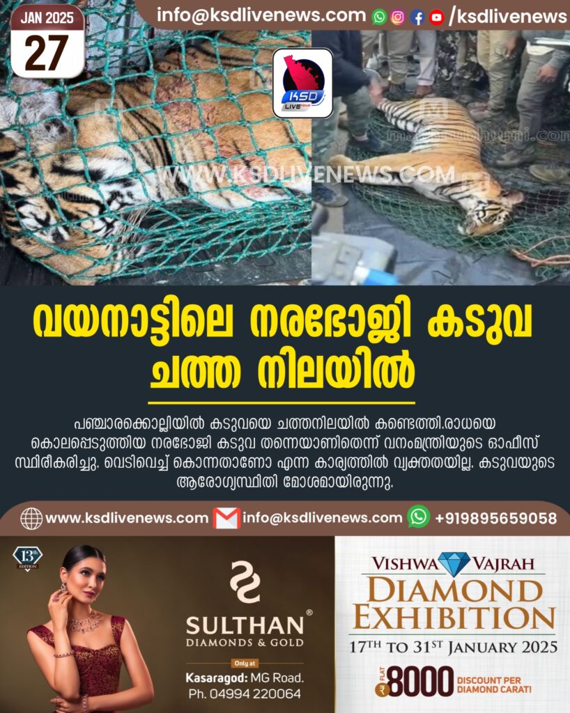 വയനാട്ടിലെ നരഭോജി കടുവ ചത്ത നിലയിൽ