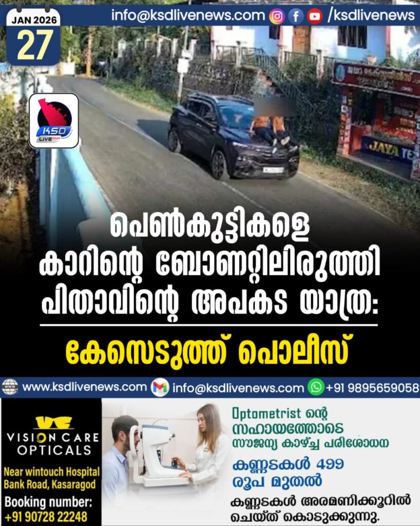 കോട്ടയം: രണ്ട് പെൺകുട്ടികളെ പിതാവ് കാറിന്റെ ബോണറ്റിലിരുത്തി സാഹസിക യാത്ര നടത്തിയ സംഭവത്തിൽ പൊലീസ് കേസെടുത്തു. കോട്ടയം പാമ്പാടിയിലാണ് സംഭവം. പെണ്കുട്ടികളുമായി പിതാവ് കാറോടിക്കുന്ന ദൃശ്യങ്ങൾ സമൂഹ മാധ്യമങ്ങളിൽ പ്രചരിച്ചിരുന്നു. അപകടയാത്ര നടത്തിയ കാര് ഉടന് പിടിച്ചെടുക്കുമെന്നാണ് വിവരം.