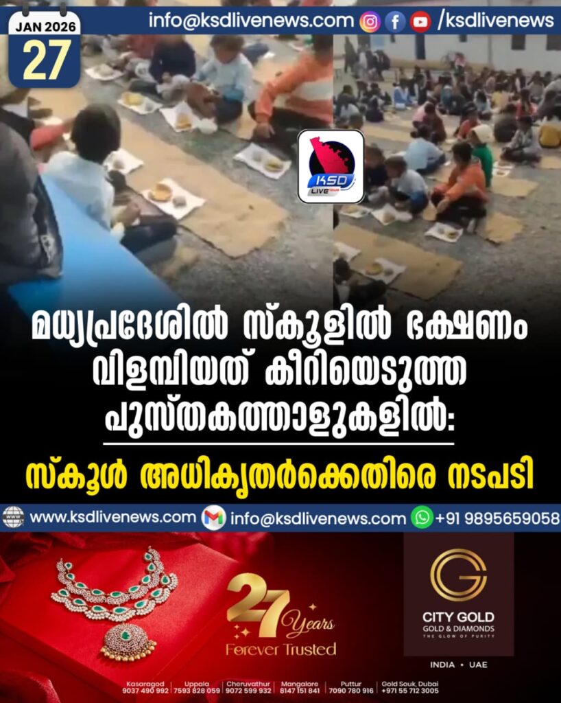 മൈഹാർ: മധ്യപ്രദേശിലെ മൈഹാർ ജില്ലയിലുള്ള ഒരു സർക്കാർ സ്കൂളിൽ റിപ്പബ്ലിക് ദിനത്തോടനുബന്ധിച്ച് വിദ്യാർത്ഥികൾക്ക് ഭക്ഷണം നൽകിയത് കീറിയെടുത്ത നോട്ടുബുക്ക് പേപ്പറുകളിൽ. സംഭവത്തിന്റെ ദൃശ്യങ്ങൾ പുറത്തുവന്നതോടെ സ്കൂൾ അധികൃതർക്കെതിരെ അച്ചടക്ക നടപടി സ്വീകരിച്ചു.