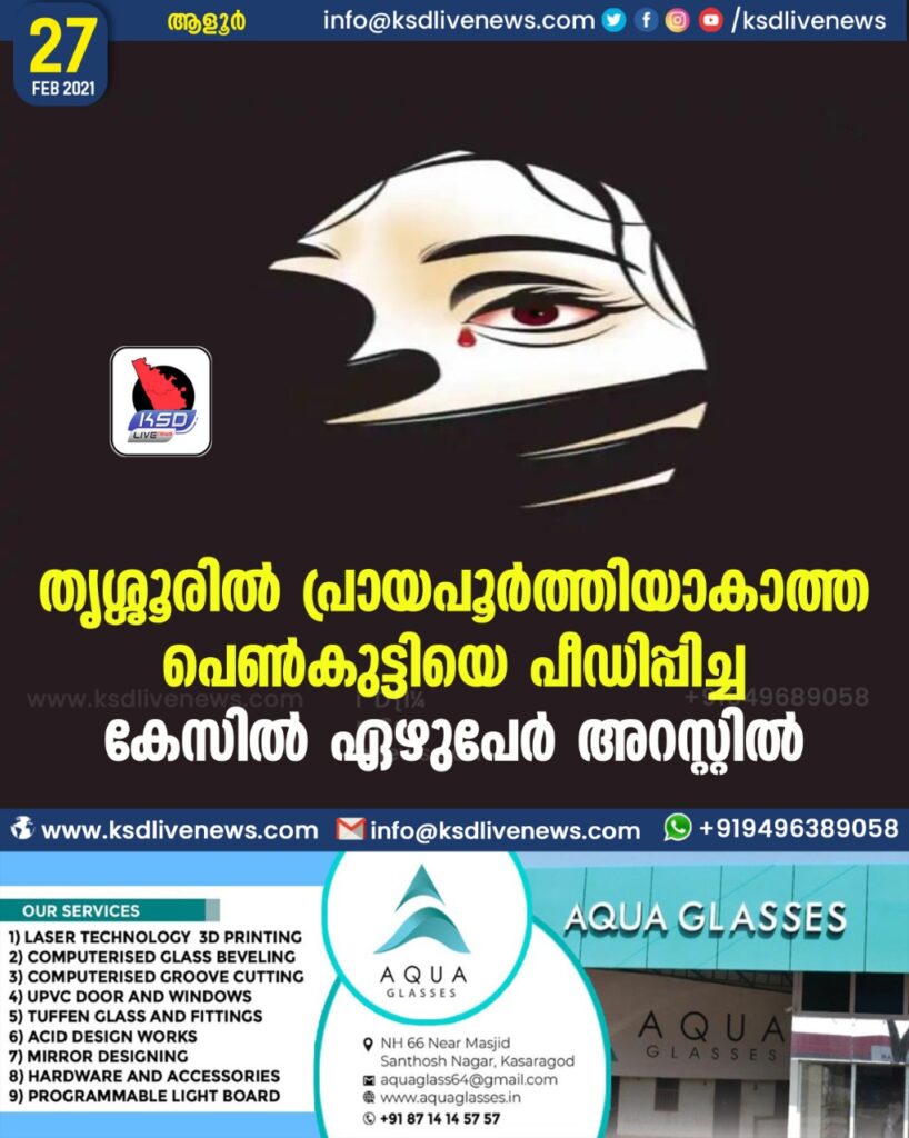 തൃശ്ശൂരില് പ്രായപൂര്ത്തിയാകാത്ത പെണ്കുട്ടിയെ പീഡിപ്പിച്ച കേസില് ഏഴുപേര് അറസ്റ്റില്