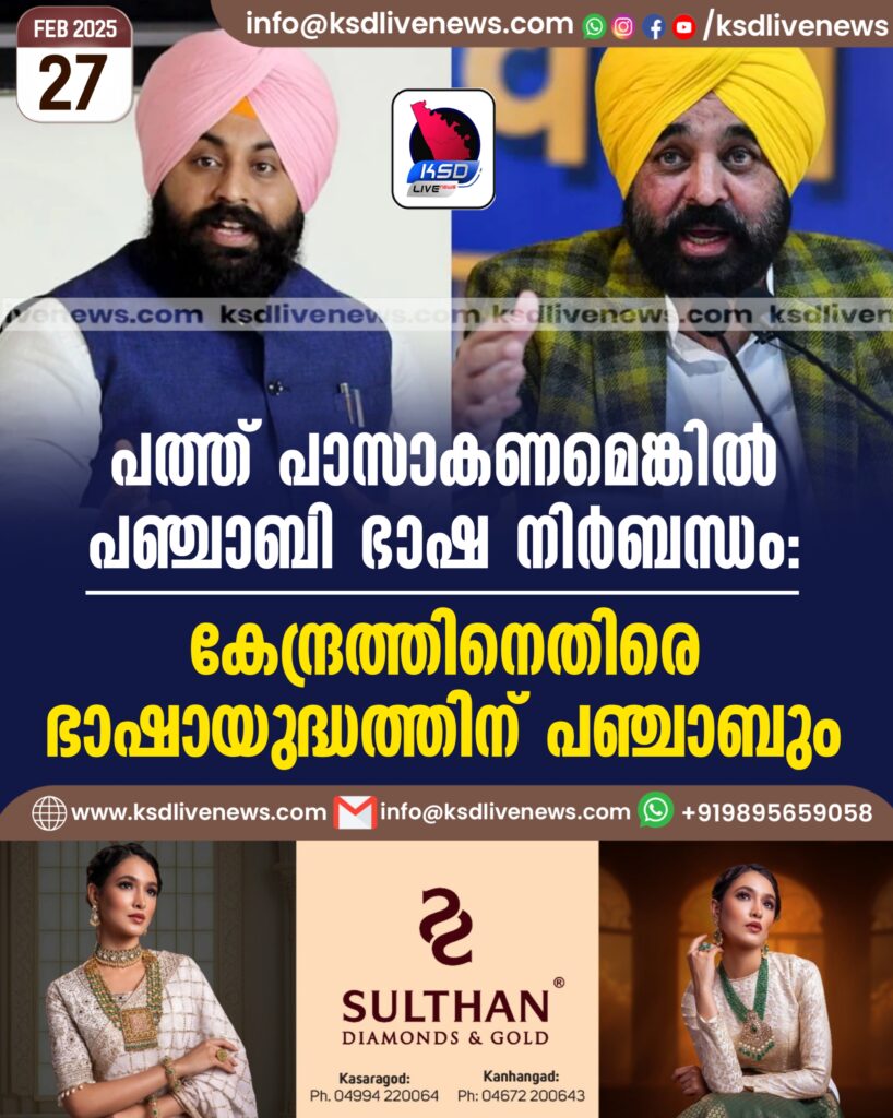 ‘പഞ്ചാബി പ്രധാനവിഷയമായി പഠിച്ചില്ലെങ്കില് പഞ്ചാബിലെ വിദ്യാര്ഥികള് ഏത് ബോര്ഡിനുകീഴിലും പത്താം ക്ലാസ് പാസായതായി കണക്കാക്കില്ല. ഏത് ബോര്ഡിനുകീഴിലുമുള്ള സംസ്ഥാനത്തെ എല്ലാ സ്കൂളുകളും പഞ്ചാബി പ്രധാന വിഷയമായി നിര്ബന്ധമായും പഠിപ്പിക്കണം. ഈ ഉത്തരവ് പാലിക്കാത്ത സ്കൂളുകള് 2008-ലെ പഞ്ചാബ് ലേണിങ് ഓഫ് പഞ്ചാബി ആന്ഡ് അദര് ലാംഗ്വേജസ് ആക്റ്റ് പ്രകാരമുള്ള നടപടി നേരിടേണ്ടിവരും.’ -പഞ്ചാബ് സര്ക്കാരിന്റെ ഉത്തരവ് പറഞ്ഞു. സംസ്ഥാനത്തെ എല്ലാ സ്കൂളുകളിലും ഒന്നാം ക്ലാസ് മുതല് പത്താം ക്ലാസ് വരെ പഞ്ചാബി പഠിപ്പിക്കണമെന്ന് നേരത്തേ 2021-ല് സര്ക്കാര് നിയമഭേദഗതി നടത്തിയിരുന്നു. ഇത് പ്രകാരം സര്ക്കാര് ഓഫീസുകളിലും പഞ്ചാബി നിര്ബന്ധമാക്കിയിട്ടുണ്ട്.