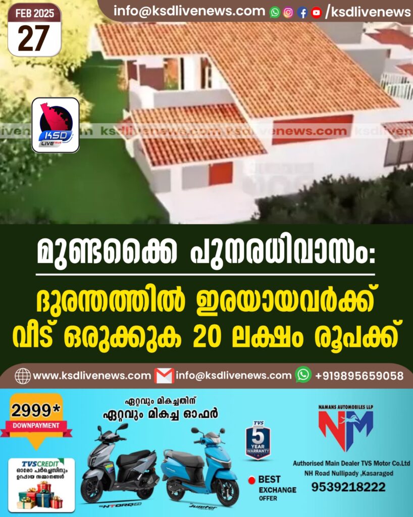 മുണ്ടക്കൈ പുനരധിവാസം: ദുരന്തത്തിൽ ഇരയായവർക്ക് വീട് ഒരുക്കുക 20 ലക്ഷം രൂപക്ക്