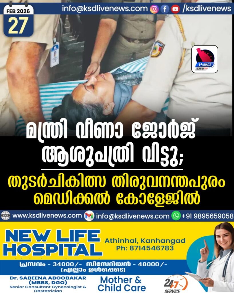 മന്ത്രി വീണാ ജോർജ് ആശുപത്രി വിട്ടു; തുടർചികിത്സ തിരുവനന്തപുരം മെഡിക്കൽ കോളേജിൽ