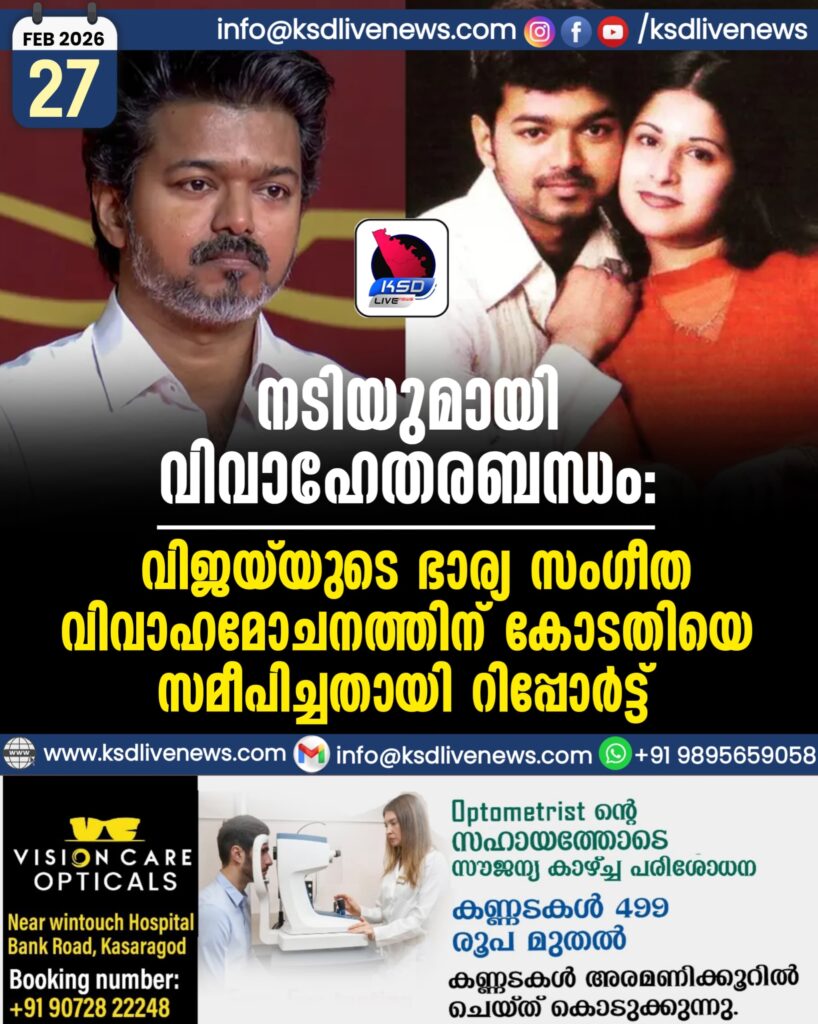 നടിയുമായി വിവാഹേതരബന്ധം: വിജയ്യുടെ ഭാര്യ സംഗീത വിവാഹമോചനത്തിന് കോടതിയെ സമീപിച്ചതായി റിപ്പോർട്ട്