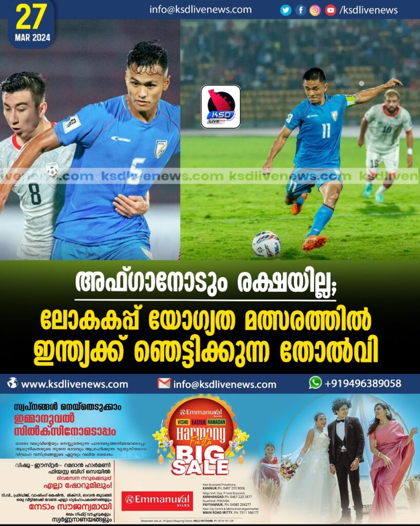 അഫ്ഗാനോടും രക്ഷയില്ല; ലോകകപ്പ് യോഗ്യത മത്സരത്തില് ഇന്ത്യക്ക് ഞെട്ടിക്കുന്ന തോല്വി