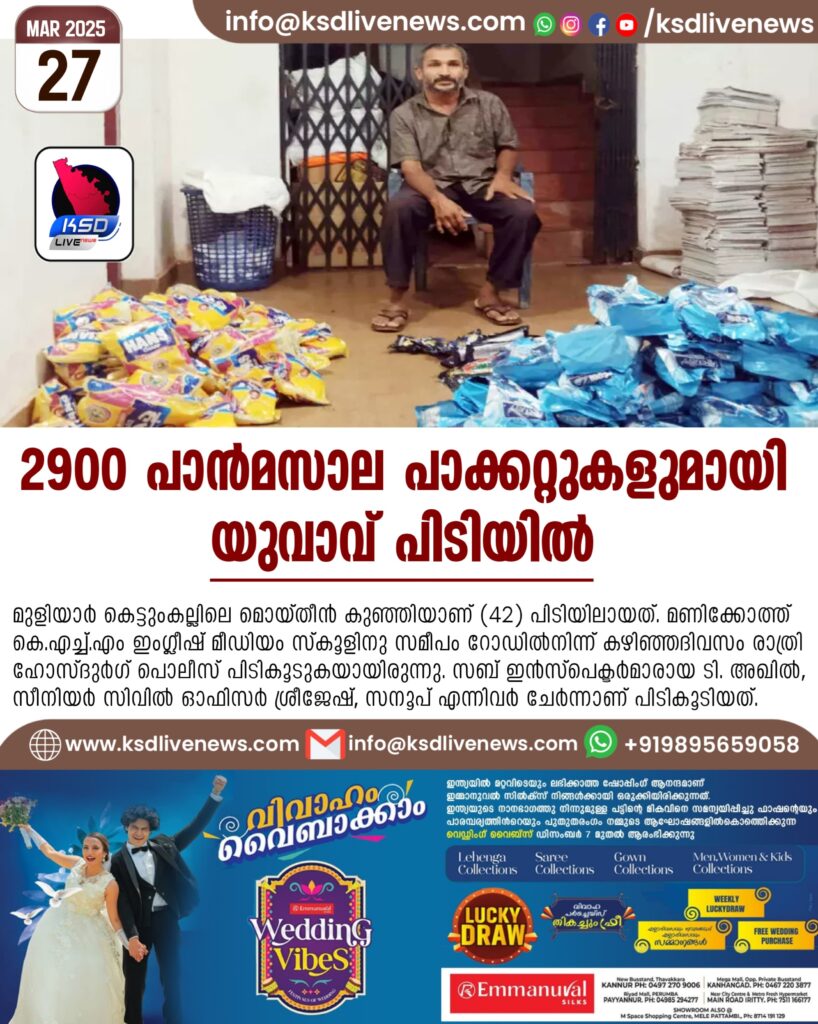2900 പാ​ൻ​മ​സാ​ല പാ​ക്ക​റ്റു​ക​ളു​മാ​യി യു​വാ​വ് പി​ടി​യി​ൽ