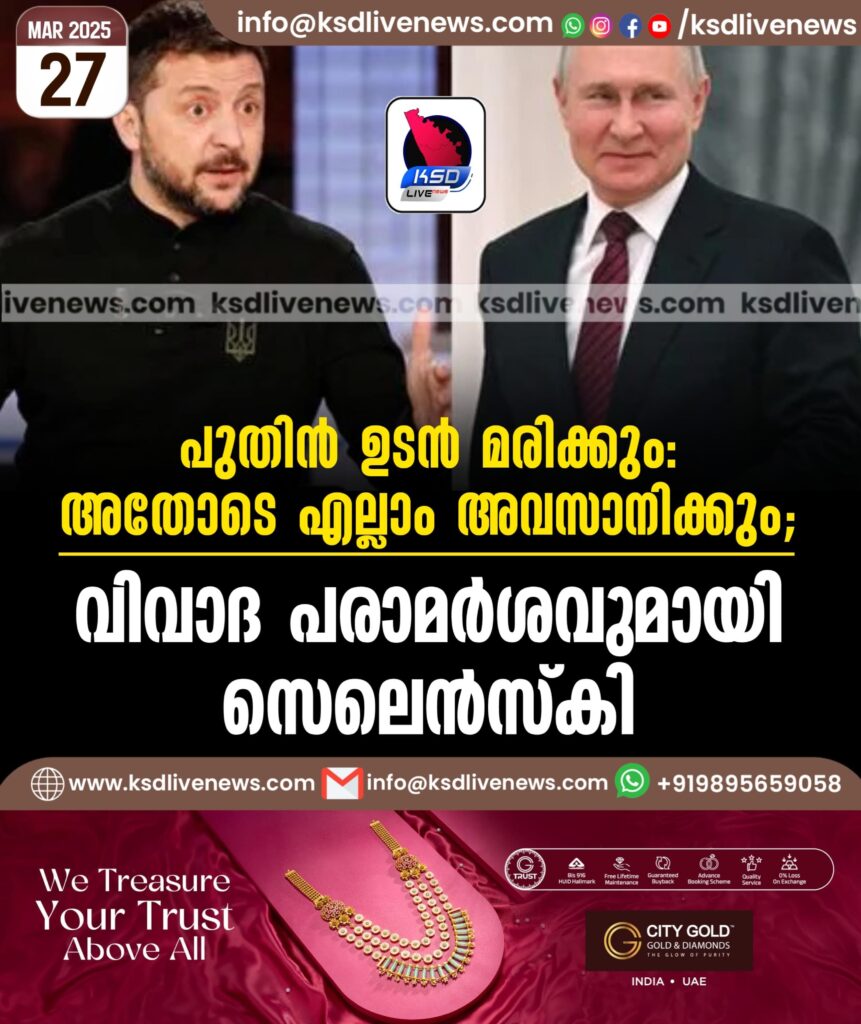 പുതിൻ ഉടൻ മരിക്കും: അതോടെ എല്ലാം അവസാനിക്കും; വിവാദ പരാമർശവുമായി സെലെൻസ്കി
