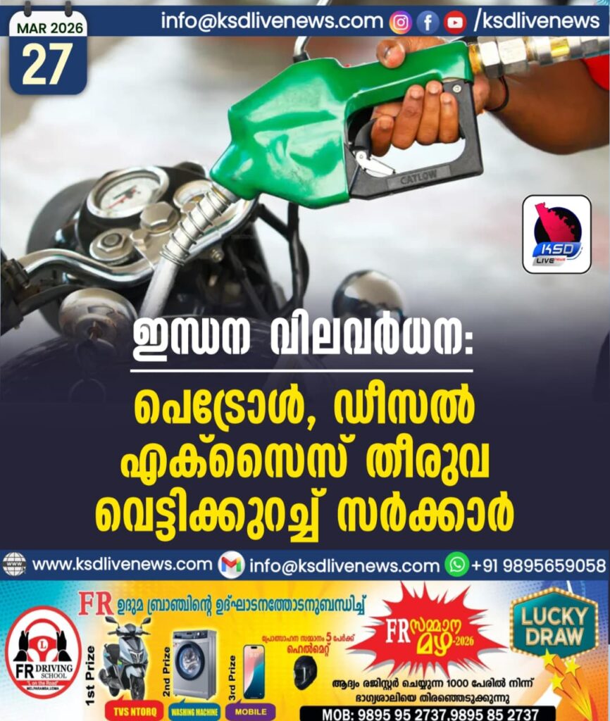 ഇന്ധന വിലവർധന: പെട്രോൾ, ഡീസൽ എക്സൈസ് തീരുവ വെട്ടിക്കുറച്ച് സർക്കാർ