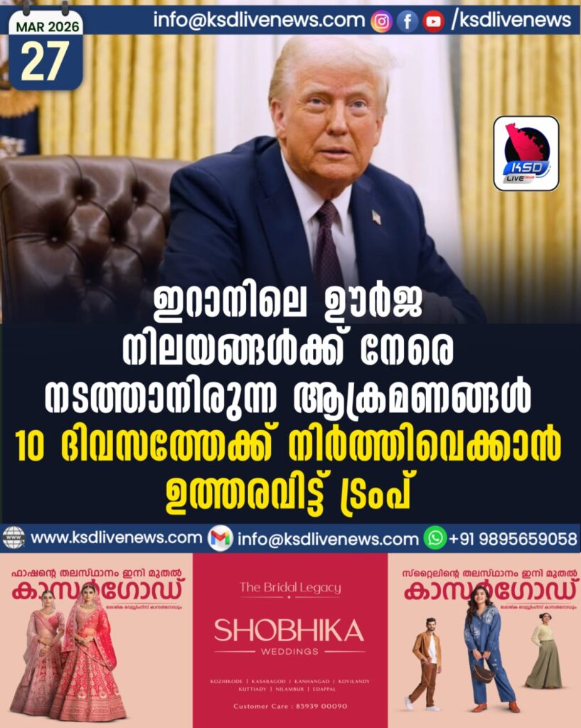 ഇറാനിലെ ഊര്ജ നിലയങ്ങള്ക്ക് നേരെ നടത്താനിരുന്ന ആക്രമണങ്ങള് 10 ദിവസത്തേക്ക് നിര്ത്തിവെക്കാന് ഉത്തരവിട്ട് ട്രംപ്