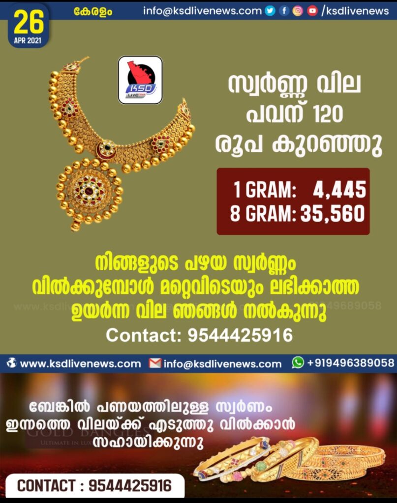 സ്വർണവില പവന് 120 രൂപ കുറഞ്ഞു