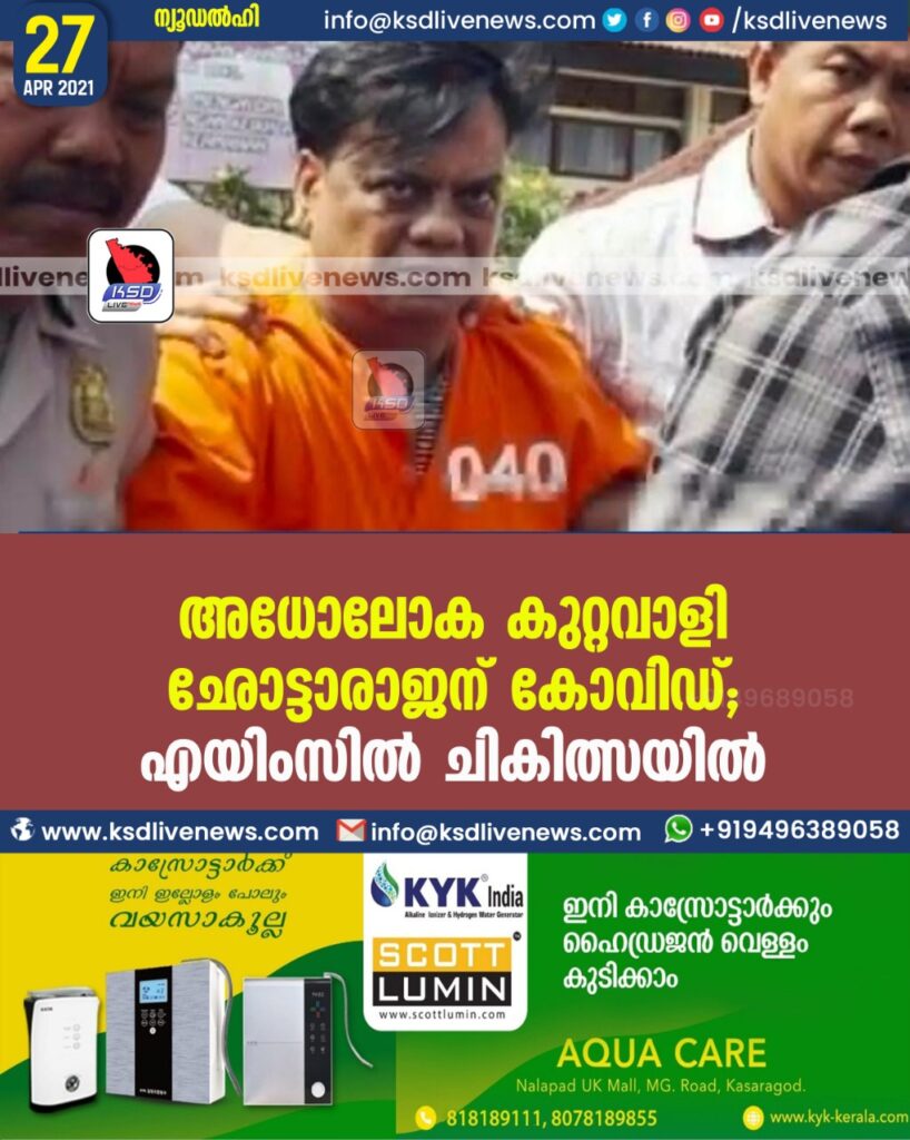 ന്യൂഡൽഹി: അധോലോക കുറ്റവാളി ഛോട്ടാ രാജനെന്ന രാജേന്ദ്ര നികാൽജെക്ക്​ കോവിഡ്​ സ്​ഥിരീകരിച്ചു. തിഹാർ ജയിൽ കഴിഞ്ഞിരുന്ന ഛോട്ടാ രാജന്​ രോഗം സ്​ഥിരീകരിച്ചതിനെ തുടർന്ന്​ ഡൽഹിയി​െല എയിംസിൽ പ്രവേശിപ്പിച്ചതായി ജയിൽ അധികൃതർ അറിയിച്ചു.