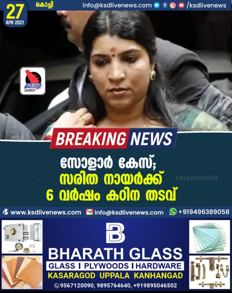 സോളാര് കേസ് : സരിത നായര്ക്ക് 6 വര്ഷം കഠിന തടവ്