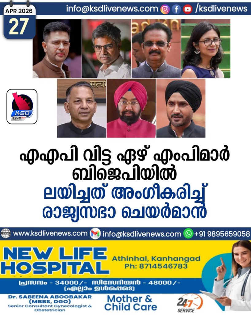 എഎപി വിട്ട ഏഴ് എംപിമാർ ബിജെപിയിൽ ലയിച്ചത് അംഗീകരിച്ച് രാജ്യസഭാ ചെയർമാൻ