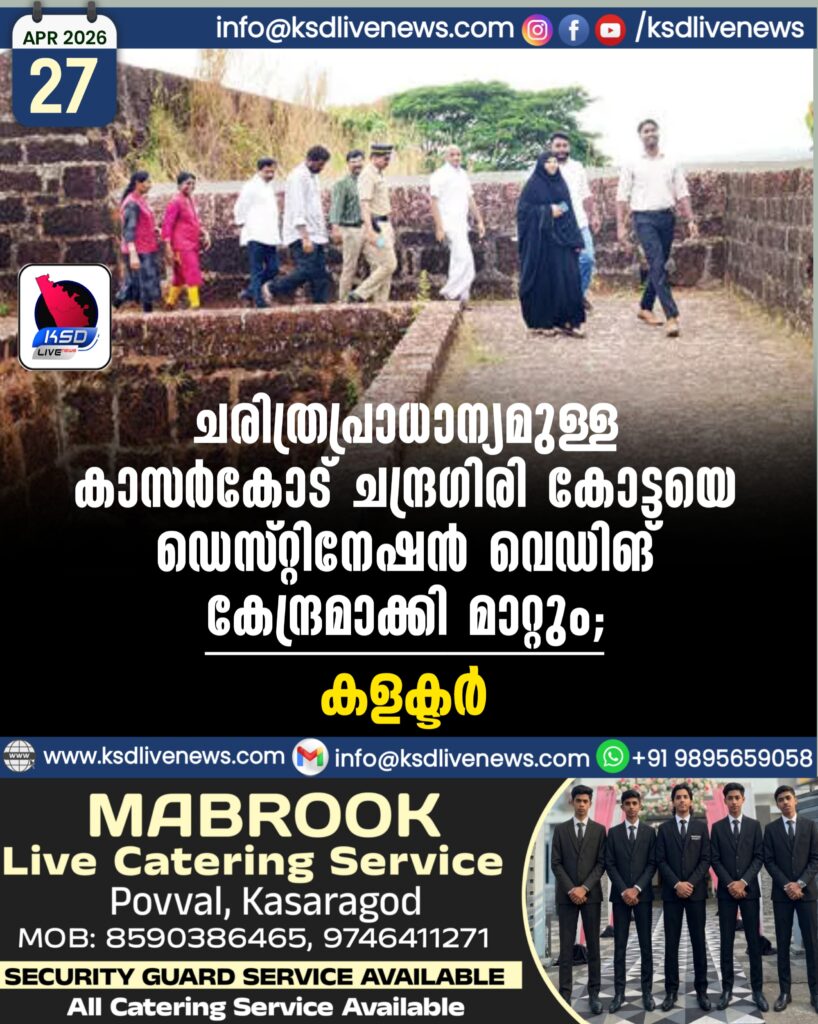 ചരിത്രപ്രാധാന്യമുള്ള കാസർകോട് ചന്ദ്രഗിരി കോട്ടയെ ഡെസ്റ്റിനേഷൻ വെഡിങ് കേന്ദ്രമാക്കി മാറ്റും-കളക്ടർ