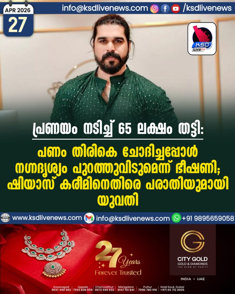പ്രണയം നടിച്ച് 65 ലക്ഷം തട്ടി; പണം തിരികെ ചോദിച്ചപ്പോള് നഗ്നദൃശ്യം പുറത്തുവിടുമെന്ന് ഭീഷണി; ഷിയാസ് കരീമിനെതിരെ പരാതിയുമായി യുവതി