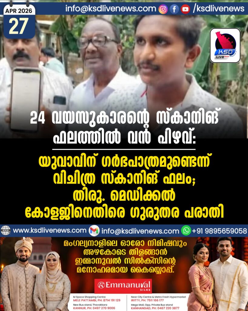 24 വയസുകാരന്റെ സ്‌കാനിങ് ഫലത്തില്‍ വന്‍ പിഴവ്; യുവാവിന് ഗര്‍ഭപാത്രമുണ്ടെന്ന് വിചിത്ര സ്‌കാനിങ് ഫലം; തിരു. മെഡിക്കല്‍ കോളജിനെതിരെ ഗുരുതര പരാതി