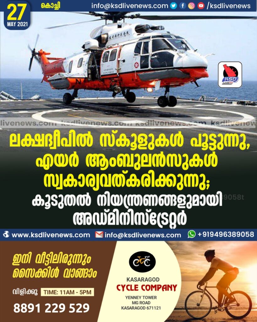 ലക്ഷദ്വീപില് സ്കൂളുകള് പൂട്ടുന്നു, എയര് ആംബുലന്സുകള് സ്വകാര്യവത്കരിക്കുന്നു; കൂടുതല് നിയന്ത്രണങ്ങളുമായി അഡ്മിനിസ്ട്രേറ്റര്
