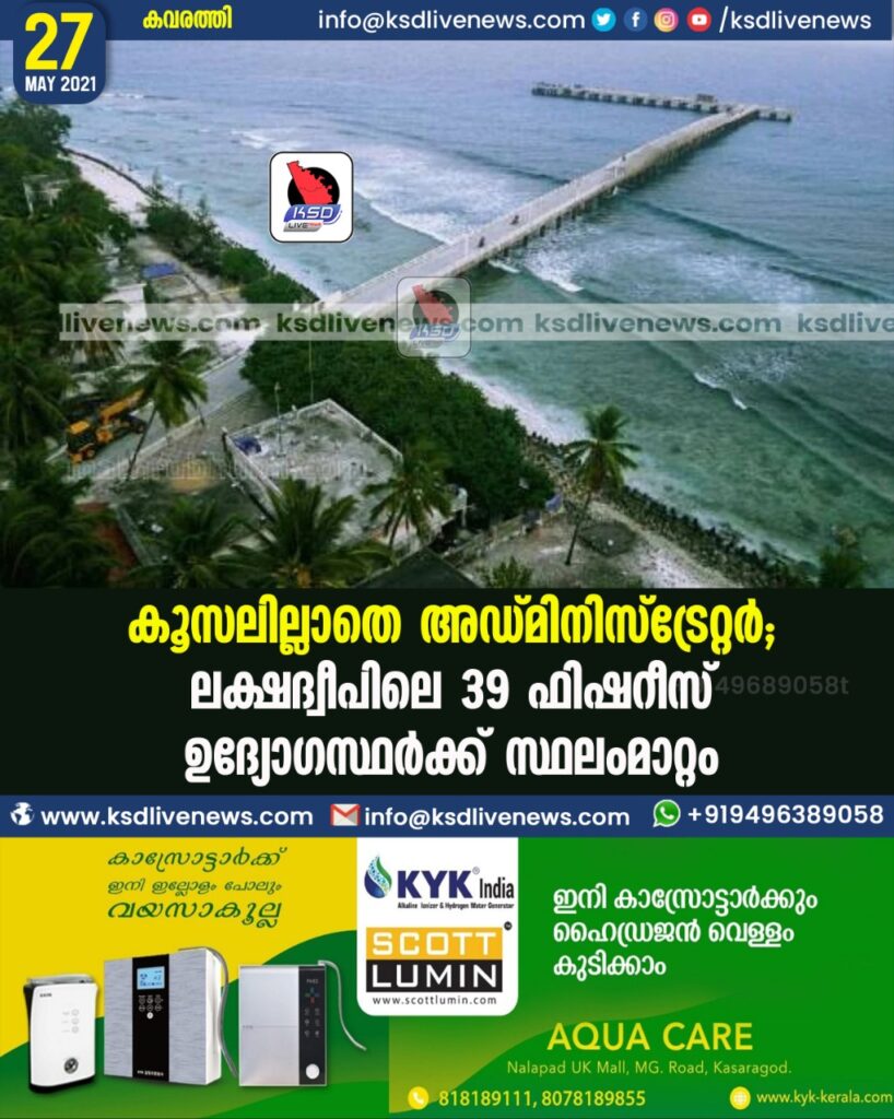 കൂസലില്ലാതെ അഡ്മിനിസ്ട്രേറ്റര്; ലക്ഷദ്വീപിലെ 39 ഫിഷറീസ് ഉദ്യോഗസ്ഥര്ക്ക് സ്ഥലംമാറ്റം
