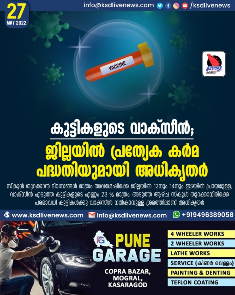 കുട്ടികളുടെ വാക്സീൻ; ജില്ലയിൽ പ്രത്യേക കർമ പദ്ധതിയുമായി അധികൃതർ