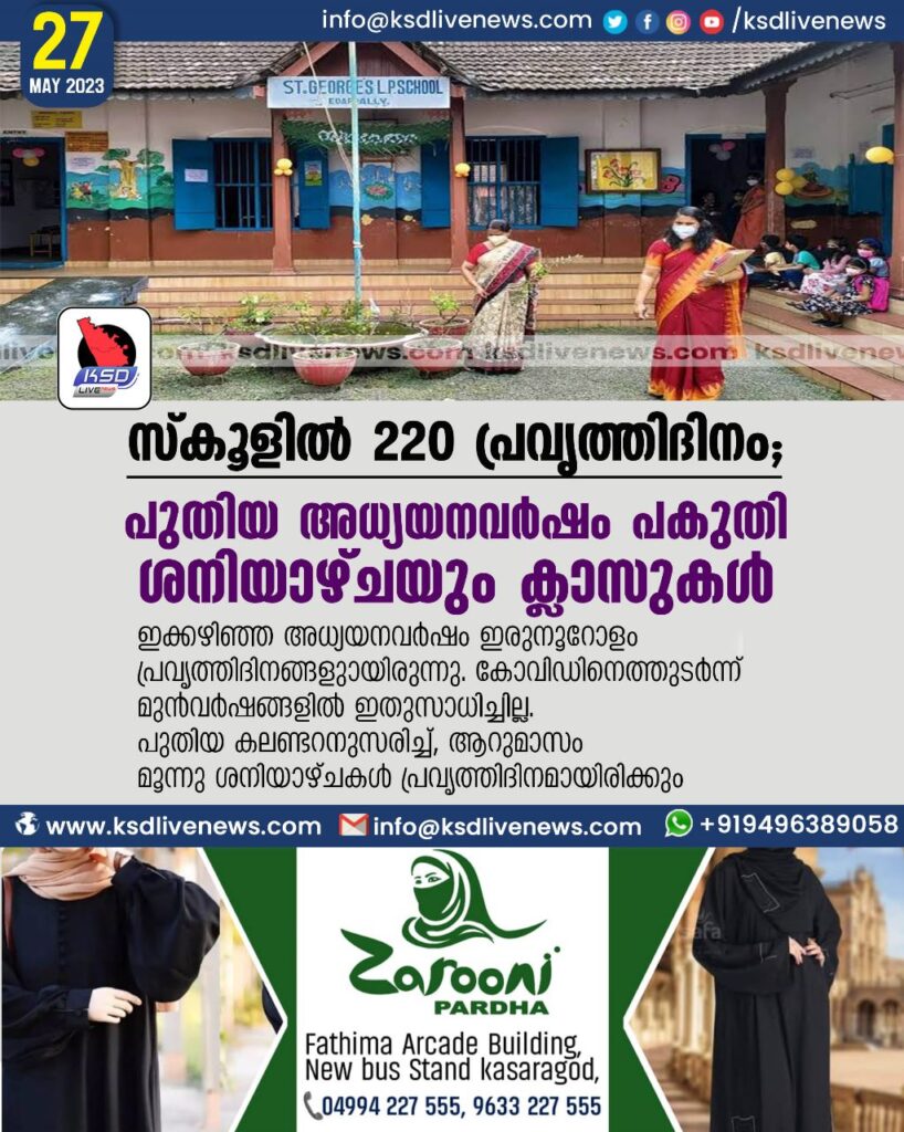 സ്കൂളില് 220 പ്രവൃത്തിദിനം: പുതിയ അധ്യയനവര്ഷം പകുതി ശനിയാഴ്ചയും ക്ലാസുകള്