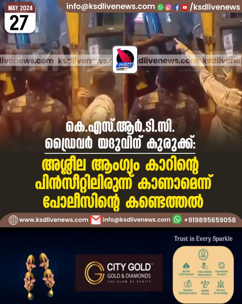 കെഎസ്ആർടിസി ഡ്രൈവർ യദുവിന് കുരുക്ക്: അശ്ലീല ആംഗ്യം കാറിന്റെ പിന്‍സീറ്റിലിരുന്ന് കാണാമെന്ന് പോലീസിന്റെ കണ്ടെത്തല്‍