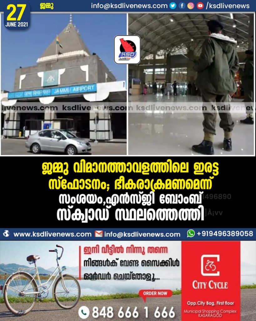 ജമ്മു വിമാനത്താവളത്തിലെ ഇരട്ട സ്ഫോടനം; ഭീകരാക്രമണമെന്ന് സംശയം, എൻസ്ജി ബോംബ് സ്ക്വാഡ് സ്ഥലത്തെത്തി