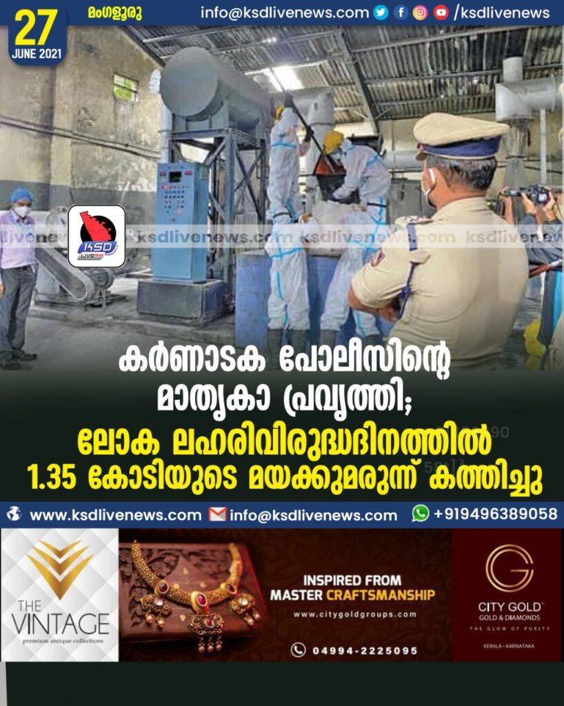 ലോക ലഹരിവിരുദ്ധദിനത്തിൽ 1.35 കോടിയുടെ മയക്കുമരുന്ന് കത്തിച്ചു