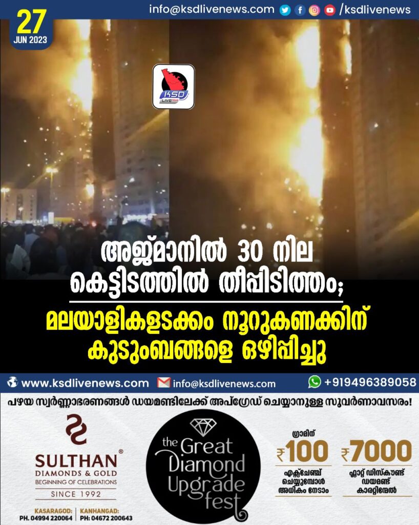അജ്മാനിൽ 30 നില കെട്ടിടത്തിൽ തീപ്പിടിത്തം; മലയാളികളടക്കം നൂറുകണക്കിന് കുടുംബങ്ങളെ ഒഴിപ്പിച്ചു