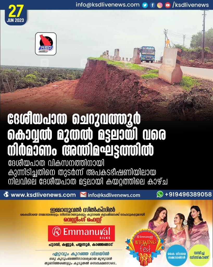 ദേശീയപാത ചെറുവത്തൂർ കൊവ്വൽ മുതൽ മട്ടലായി വരെ നിർമാണം അന്തിമഘട്ടത്തിൽ